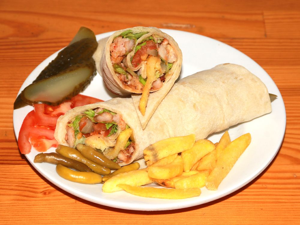 Tavuk döner dürüm, patates kızartması ve ayran (200 ml) ile